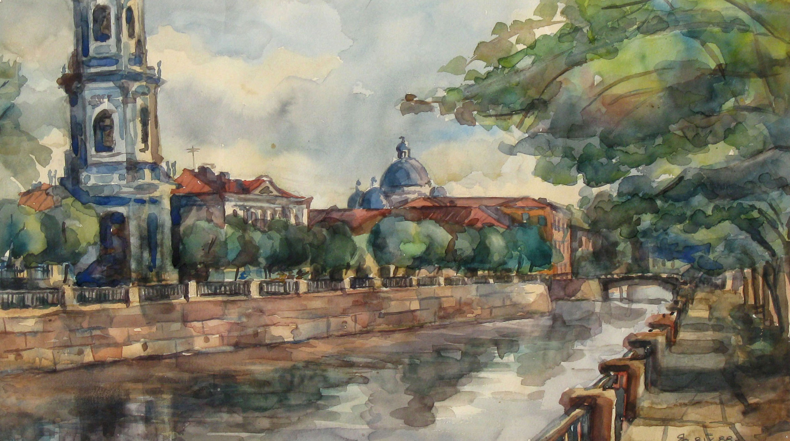 View to Lomonosov Bridge, St. Petersburge, Russia Art: memory